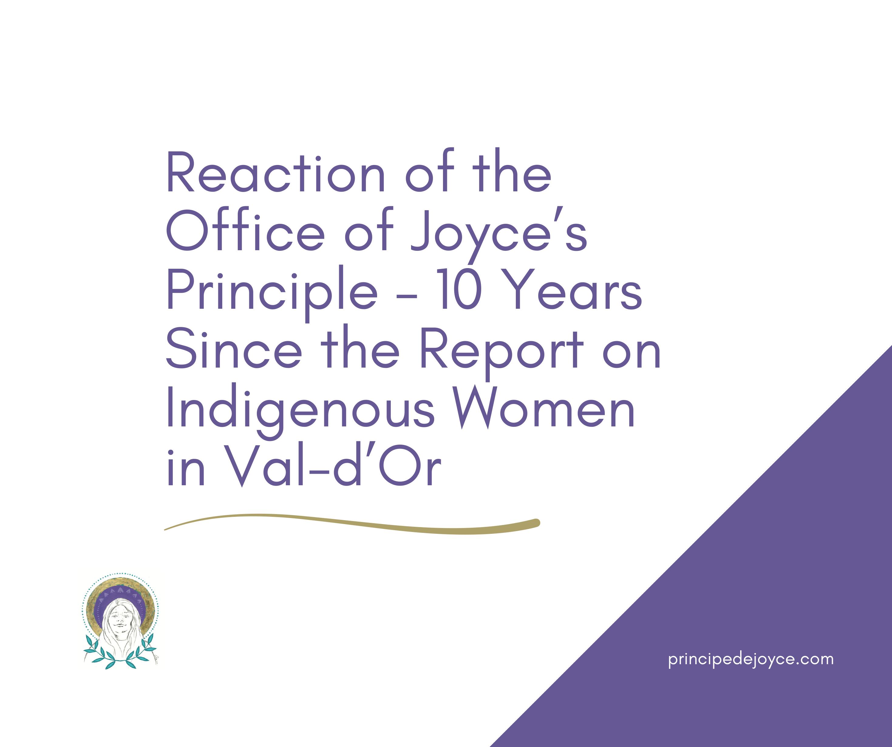 On this tenth anniversary, the Office of Joyce’s Principle pays tribute to the determination, courage, and resilience of the women of Val-d’Or. It reaffirms its commitment to continuing its efforts for awareness and action to make Quebec an inclusive environment, respectful of the rights and dignity of all people, especially Indigenous communities.